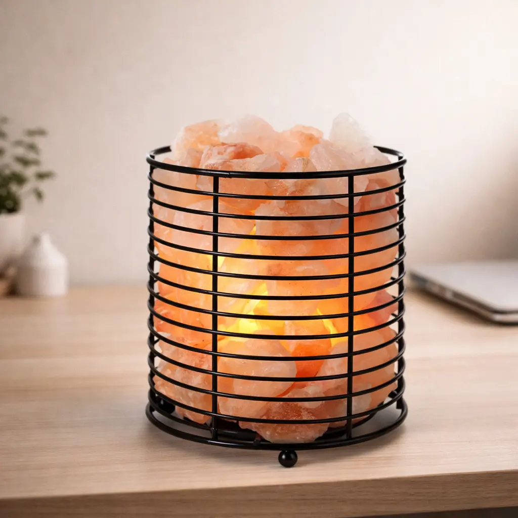 Creá un ambiente cálido y relajante con esta lámpara de piedras de sal del Himalaya con soporte. Su iluminación suave aporta un toque natural y decorativo, ideal para dormitorios, livings u oficinas, ayudando a generar una atmósfera de calma y bienestar.